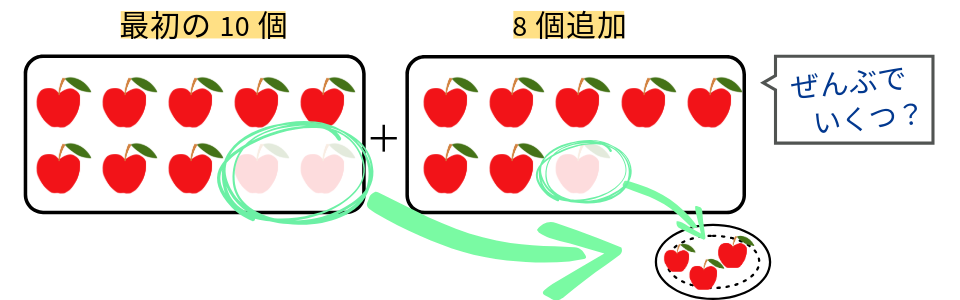こうすることで、視覚的にりんごの数の変化を理解することができます。